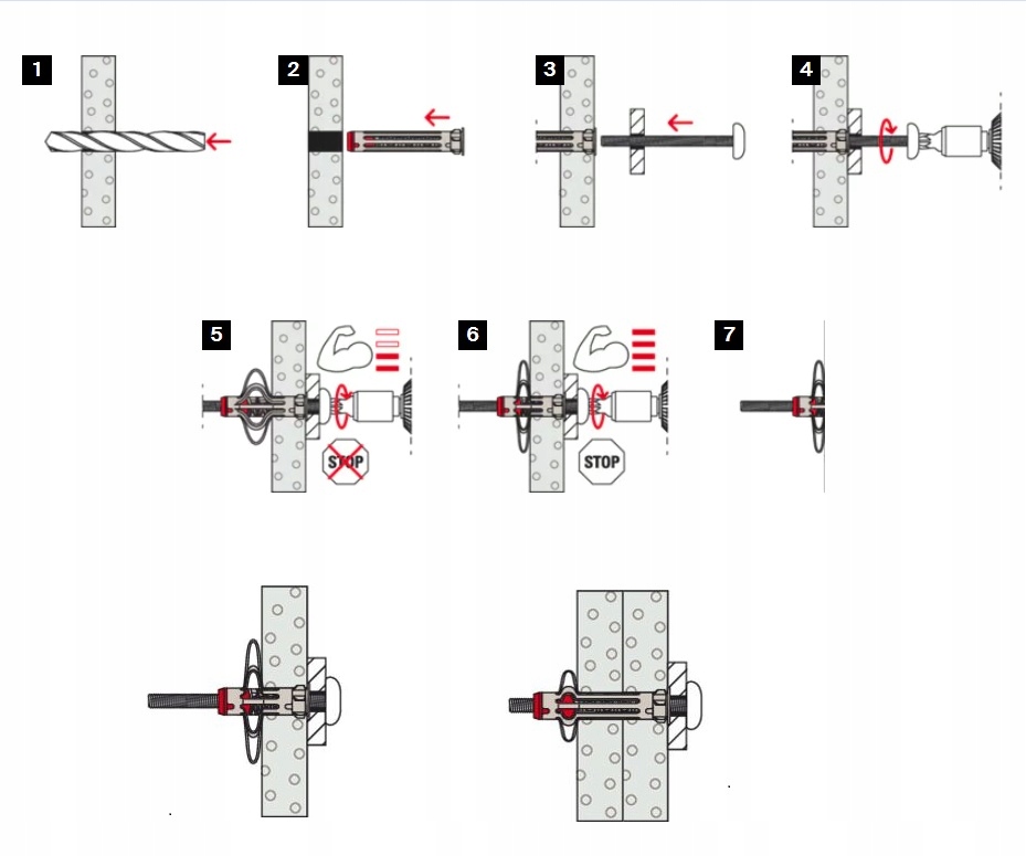 - Unikalna technologia 2-składnikowa spełnia wysokie wymagania obciążeniowe. Metalowa tuleja naciska na tył panelu, a nylonowy korpus bazowy zawiązuje się w materiale budowlanym.