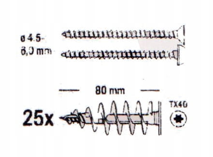 - Zastosowanie standardowych wkrętów o średnicy 4,5 - 6 mm pozwala na uniwersalne zastosowania.