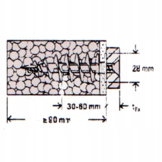 - Dzięki specjalnej geometrii końcówki kołek wkręca się do tynku o grubości do 10 mm bez wstępnego montażu -wiercenie, które umożliwia szybką instalację.