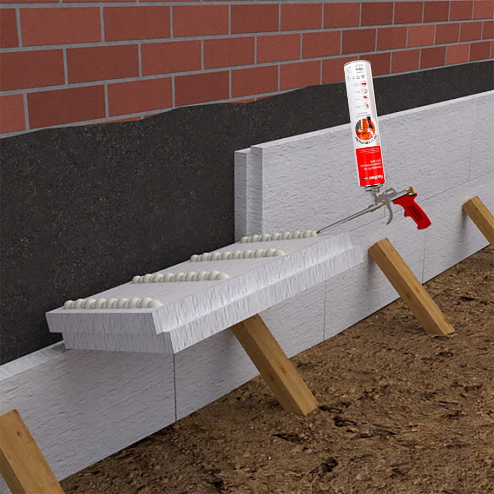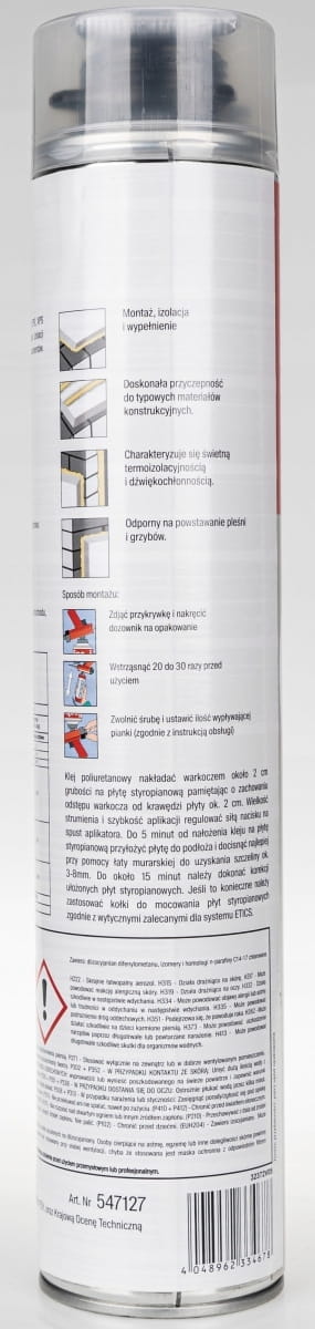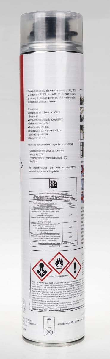 - Specjalna formuła piany poliuretanowej zapewnia dobrą przyczepność do betonu lub podłoży bitumicznych, a więc trwałe mocowanie płyt izolacyjnych.