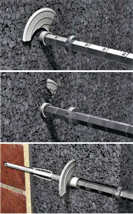 - Jedno mocowanie dla wszystkich grubości materiałów izolacyjnych od 100 mm do 400 mm. Zwiększa to produktywność, skraca czas montażu i zmniejsza przestrzeń do składowania.