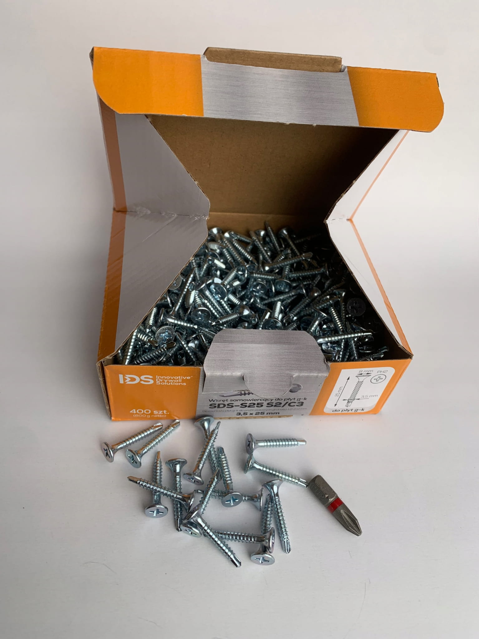 IDS WKRĘTY samowiercące do PŁYT GK 3,5x25 mm SDS-S25 400 szt.