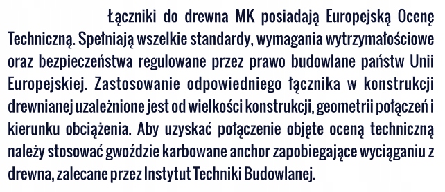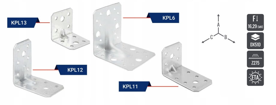 Definicją gamy tych kątowników jest wytrzymałość,wysoka jakość oraz szeroka grupa wymiarów. Odpowiednio dobrana grubość blachy, wielkość wzmacniającego przetłoczenia, optymalny rozsiew otworów o różnym fi dla kątowników każdego rozmiaru tej gamy, stanowi dojrzały stan techniki łączenia drewna. Stosowane przy konstrukcjach szkieletowych wszędzie tam gdzie następuje oddziaływanie wielu sił na geometrię połączeń.