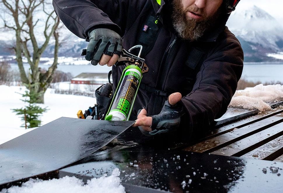 Klej nakładać punktowo lub pasmami. Produkt utwardza się pod wpływem wilgoci. Unikać nakładania obwodowego, wokół klejonych powierzchni. Może być stosowany w temperaturach poniżej -0°C, (testowany do -15°C). Temperatura aplikacji -15°C do +40°C. Do aplikacji użyj wyciskacza ESSVE TACK GUN.
