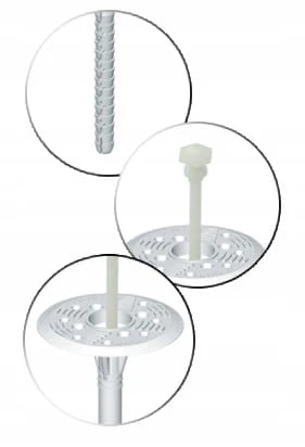 Kołki do styropianu Łącznik wbijany z trzpieniem tworzywowym z długą strefą rozpierania LFN