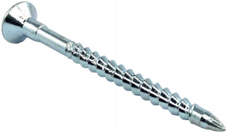 - Stożkowa głowa wkręta jest bardziej masywna i posiada znaczne pogrubienie pod jej nasadą.