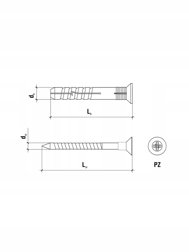 Kołek wbijany zalecany do montażu elementów drewnianych i drewnopodobnych, koszulka z nylonu.