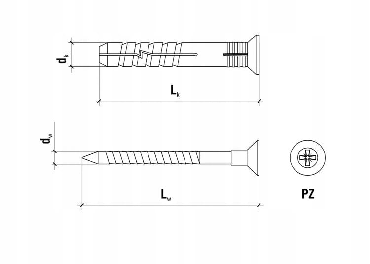 - Pewny montaż. Stożkowa głowa wkręta jest bardziej masywna i posiada znaczne pogrubienie pod nasadą.