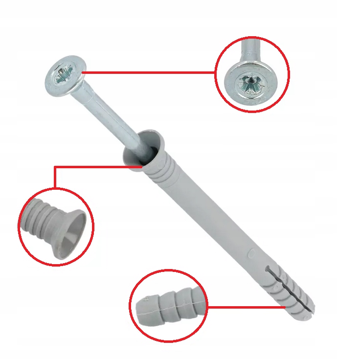 - Zwiększona średnica głowy zapewnia znacznie lepszy docisk montowanych elementów