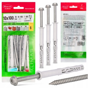 Kołki ramowe rozporowe 10 x 100 mm z wkrętem z łbem sześciokątnym 7,0 x 105 mm 6 szt. Wkręt-met