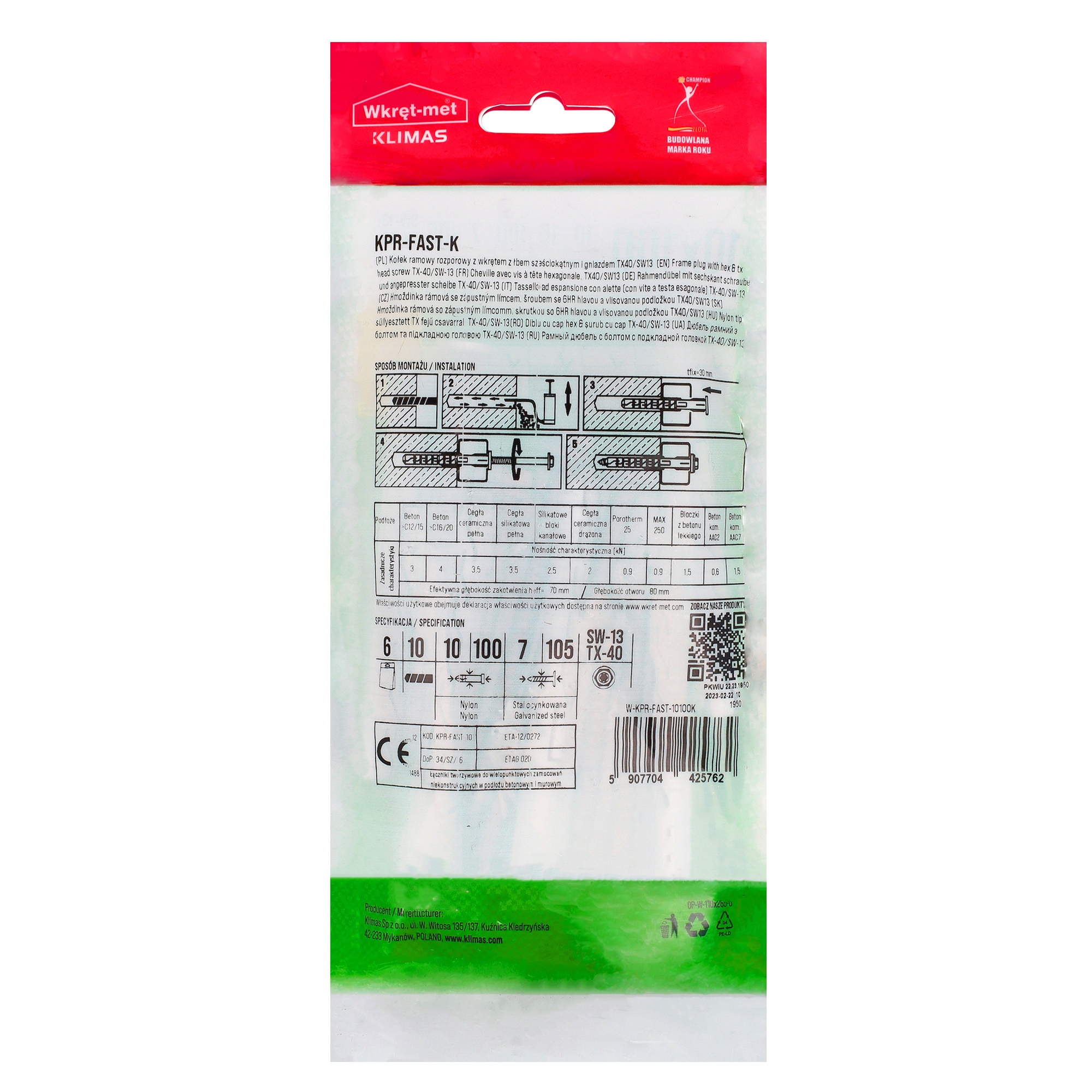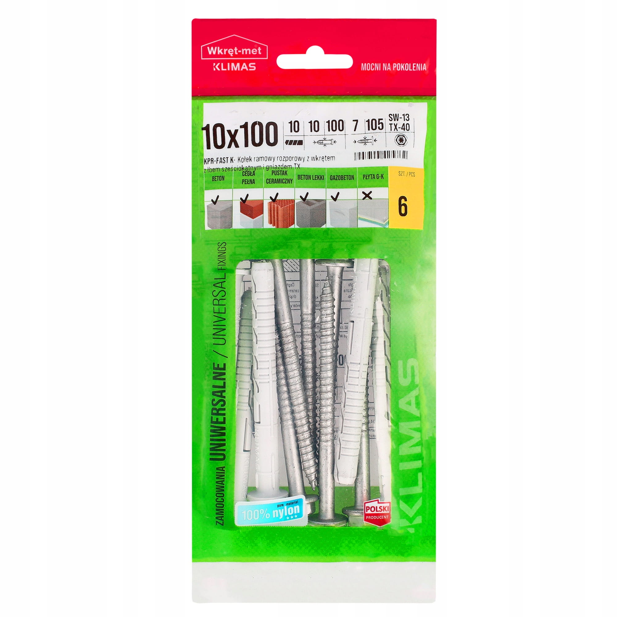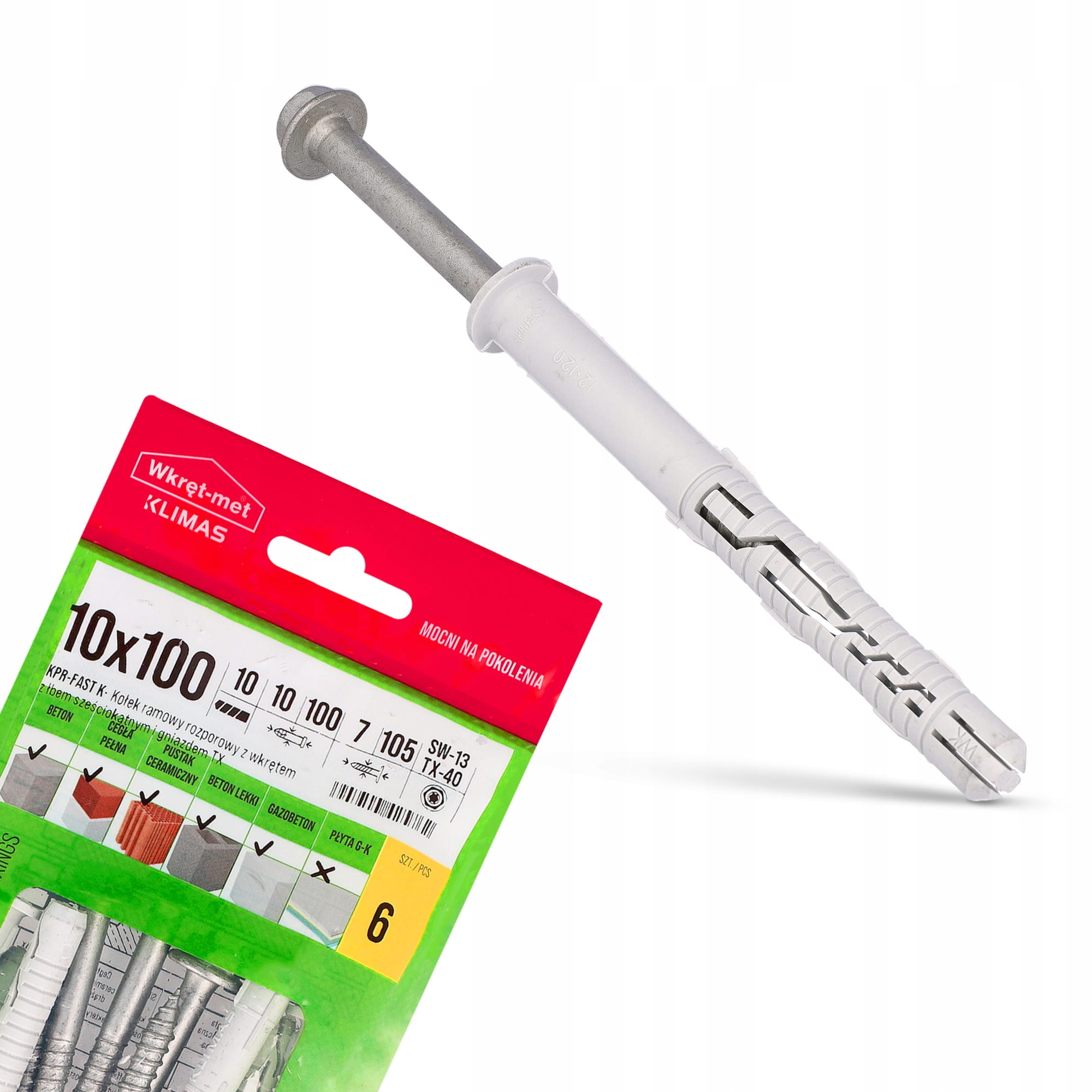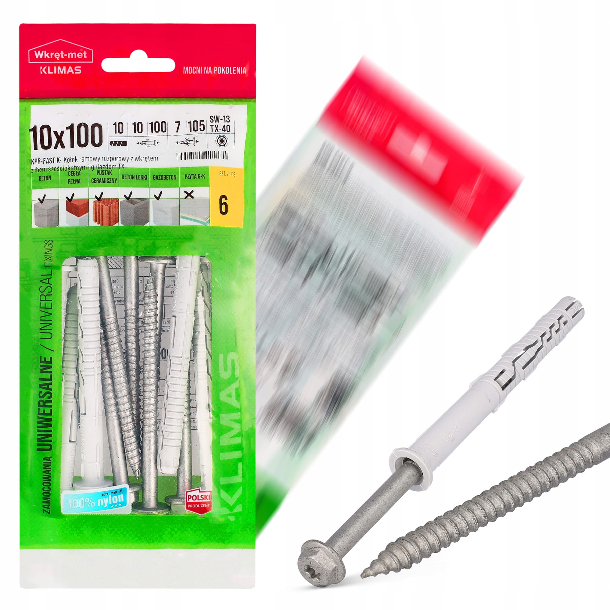 Kołki z wkrętem ramowe rozporowe z kołnierzem 10x100mm 6 szt. KPR-FAST