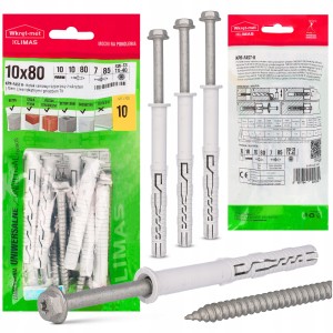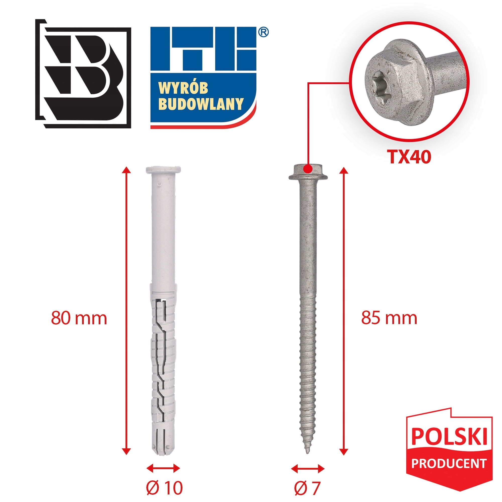 Kołki ramowe rozporowe 10 x 80 mm z wkrętem z łbem sześciokątnym 7,0 x 85 mm 10 szt. Wkręt-met