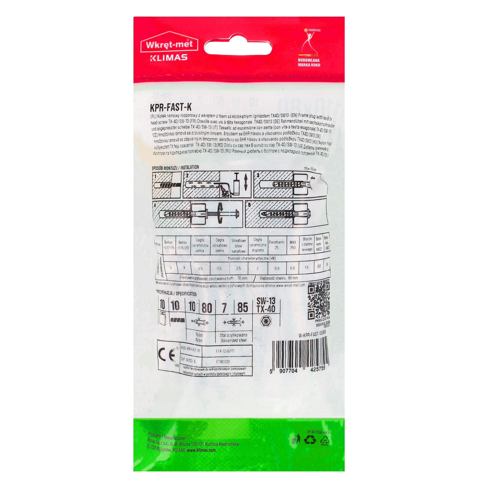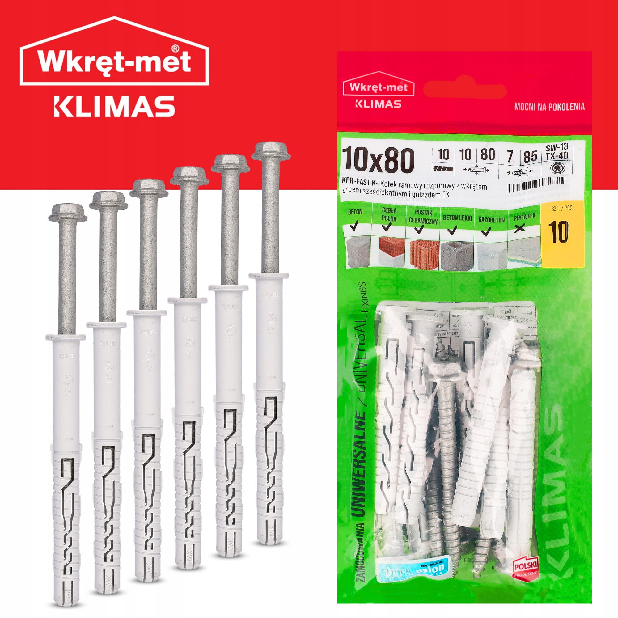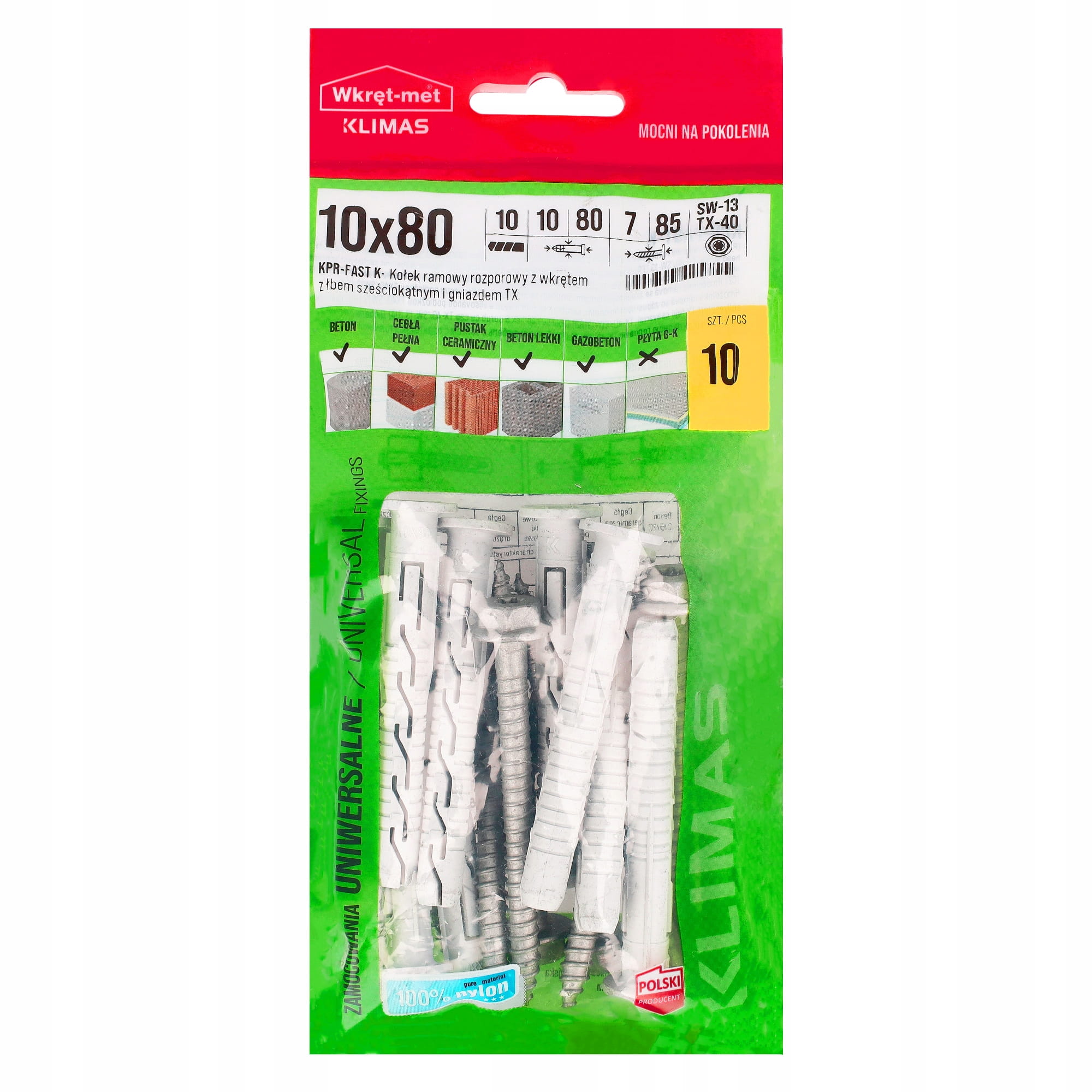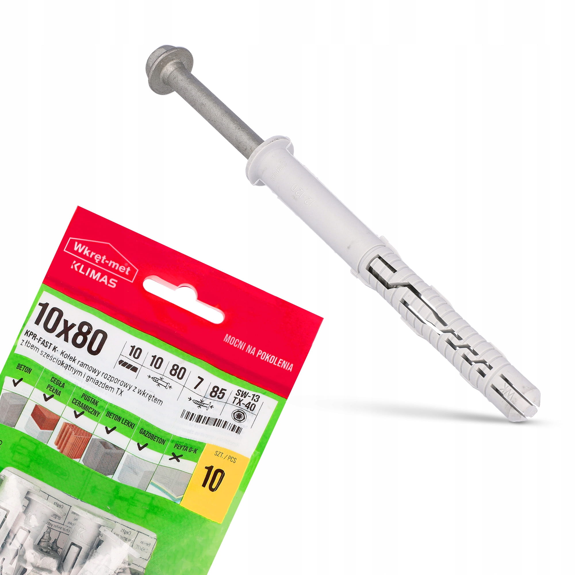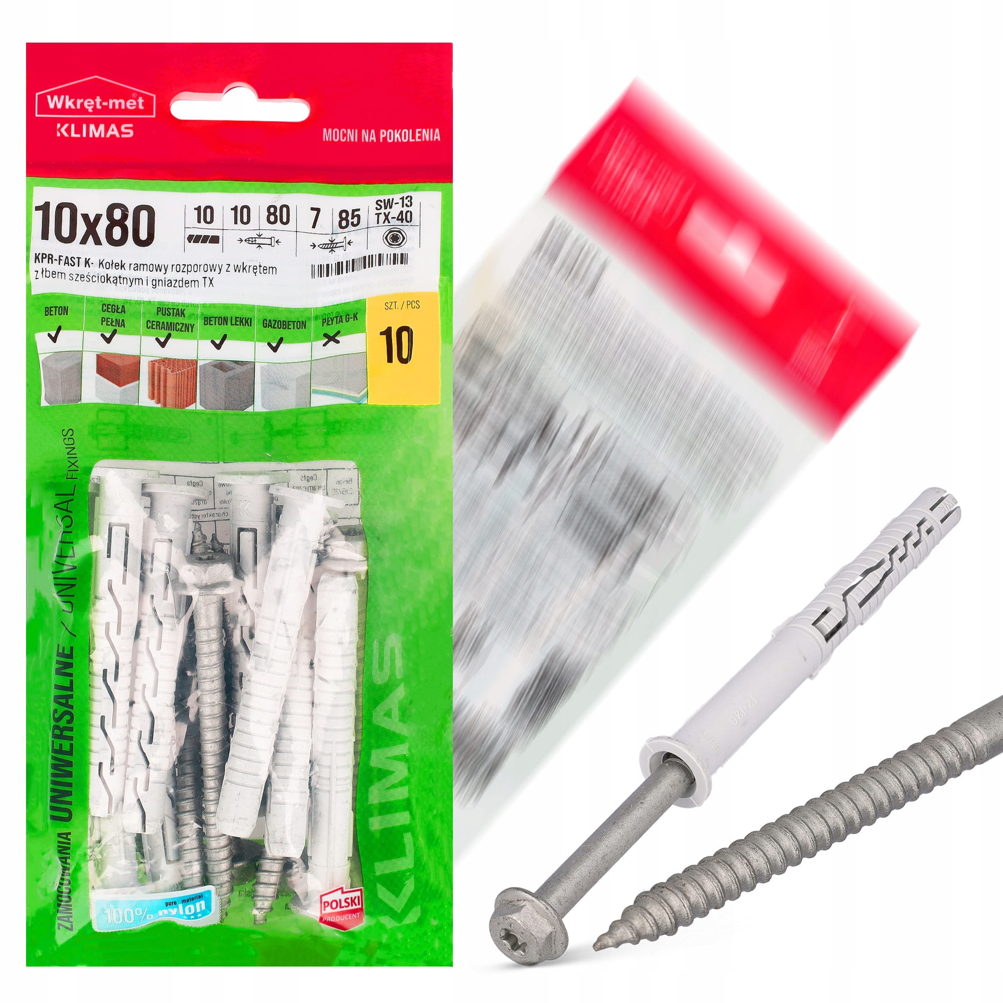 Kołki z wkrętem ramowe rozporowe z kołnierzem 10x80mm 10 szt. KPR-FAST