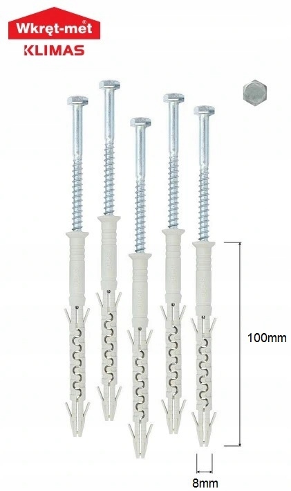Kołki z wkrętem ramowe rozporowe z łbem sześciokątnym 8x100mm50szt.KPR-PIKE