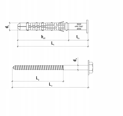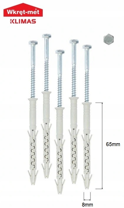 Kołki z wkrętem ramowe rozporowe z łbem sześciokątnym8x65mm 100szt.KPR-PIKE