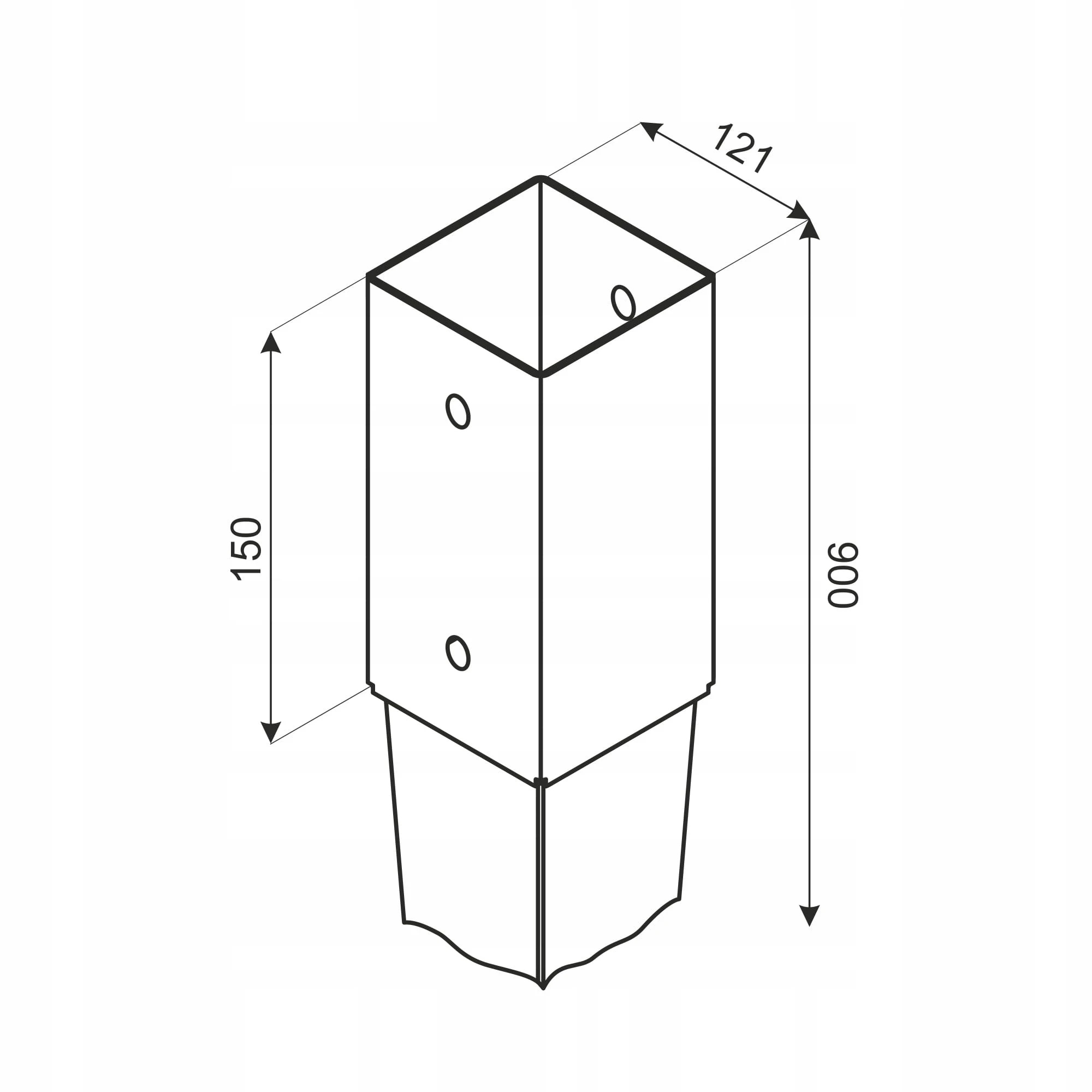 Podstawa słupa ułatwia montaż elementów drewnianych w glebie oraz zapewnia odpowiednią dylatację drewna od podłoża.