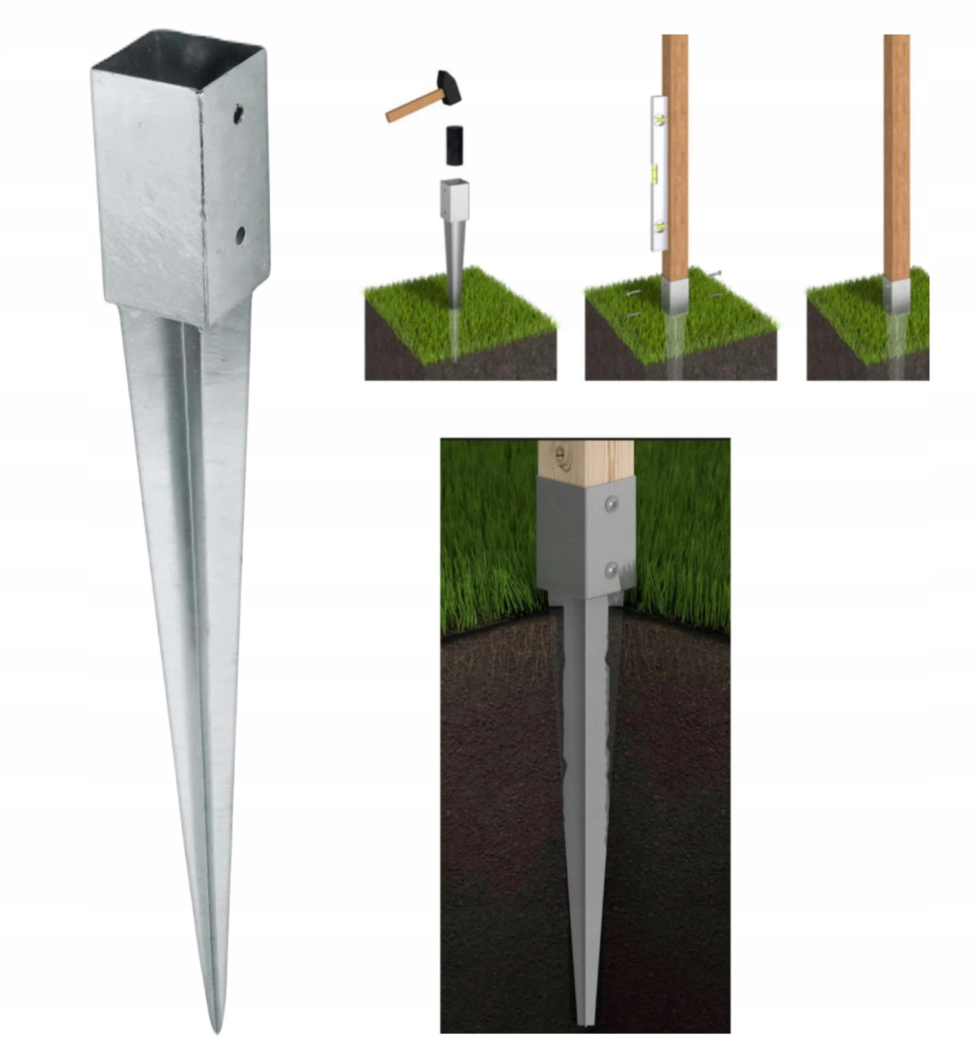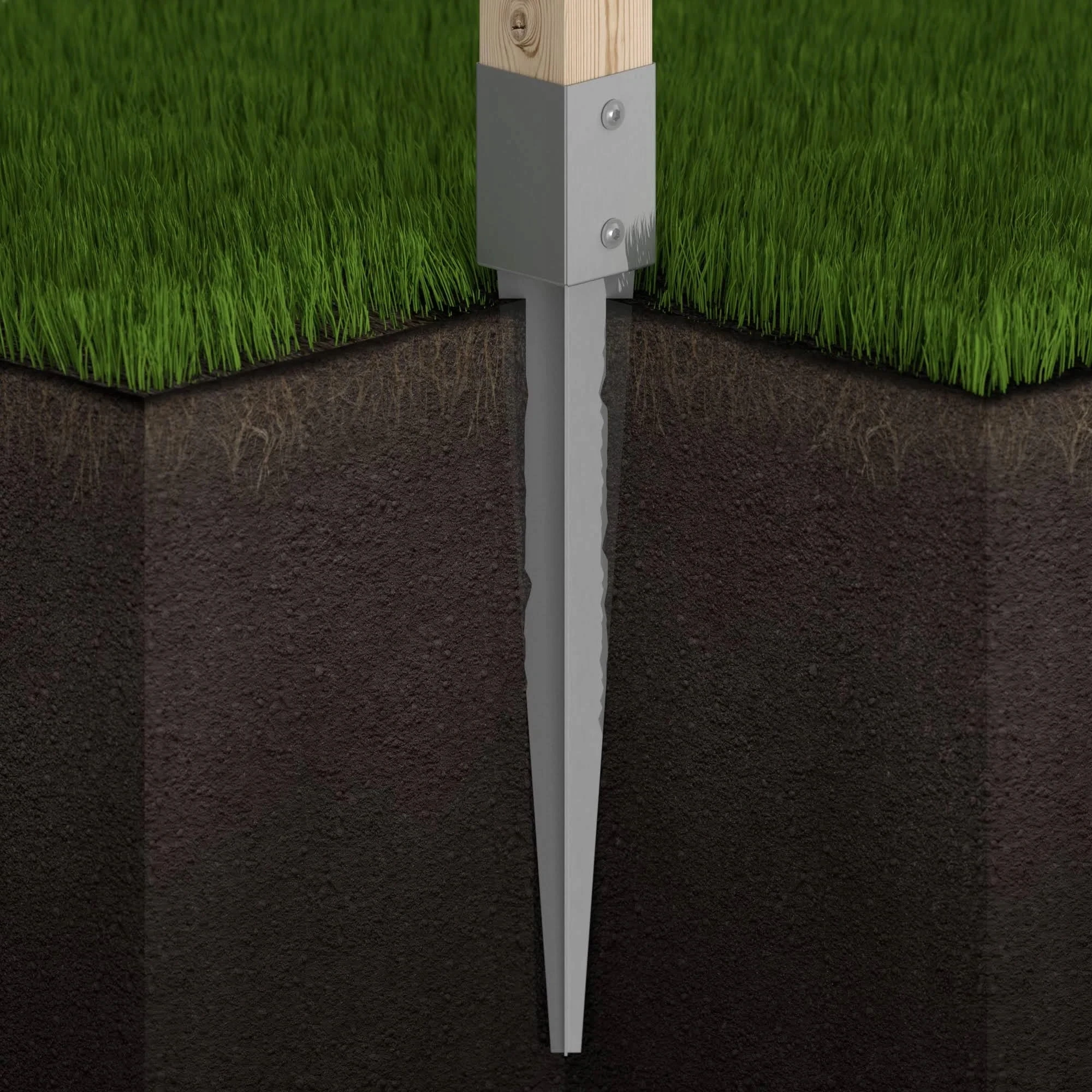 Podstawa słupa ułatwia montaż elementów drewnianych w glebie.