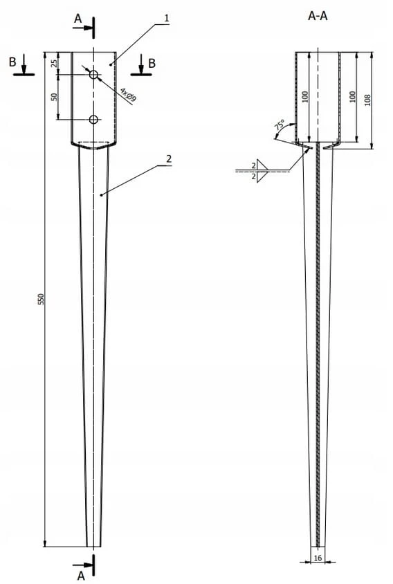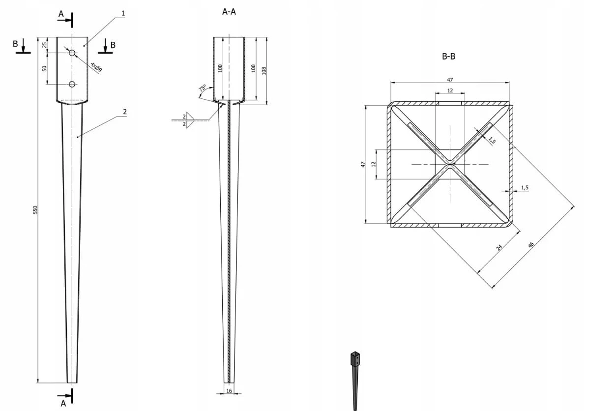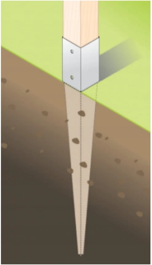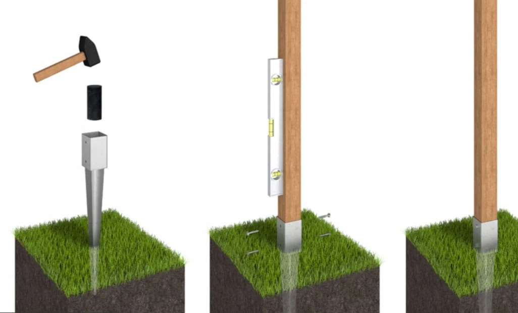 Podstawa słupa ułatwia montaż elementów drewnianych w glebie.