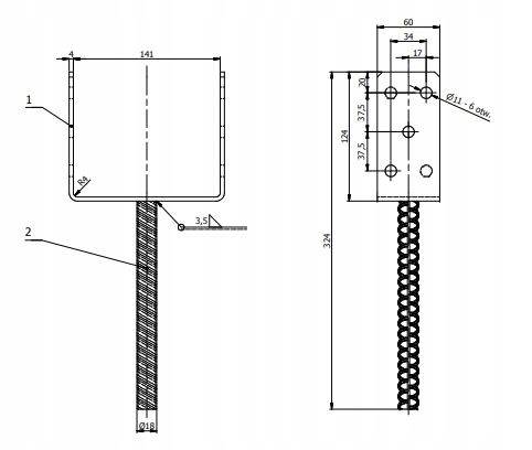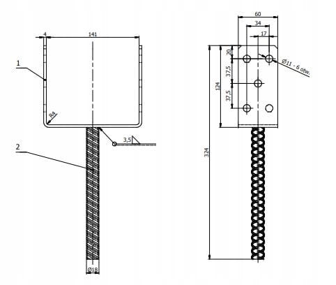- ilość otworów - 6 otworów ø11mm