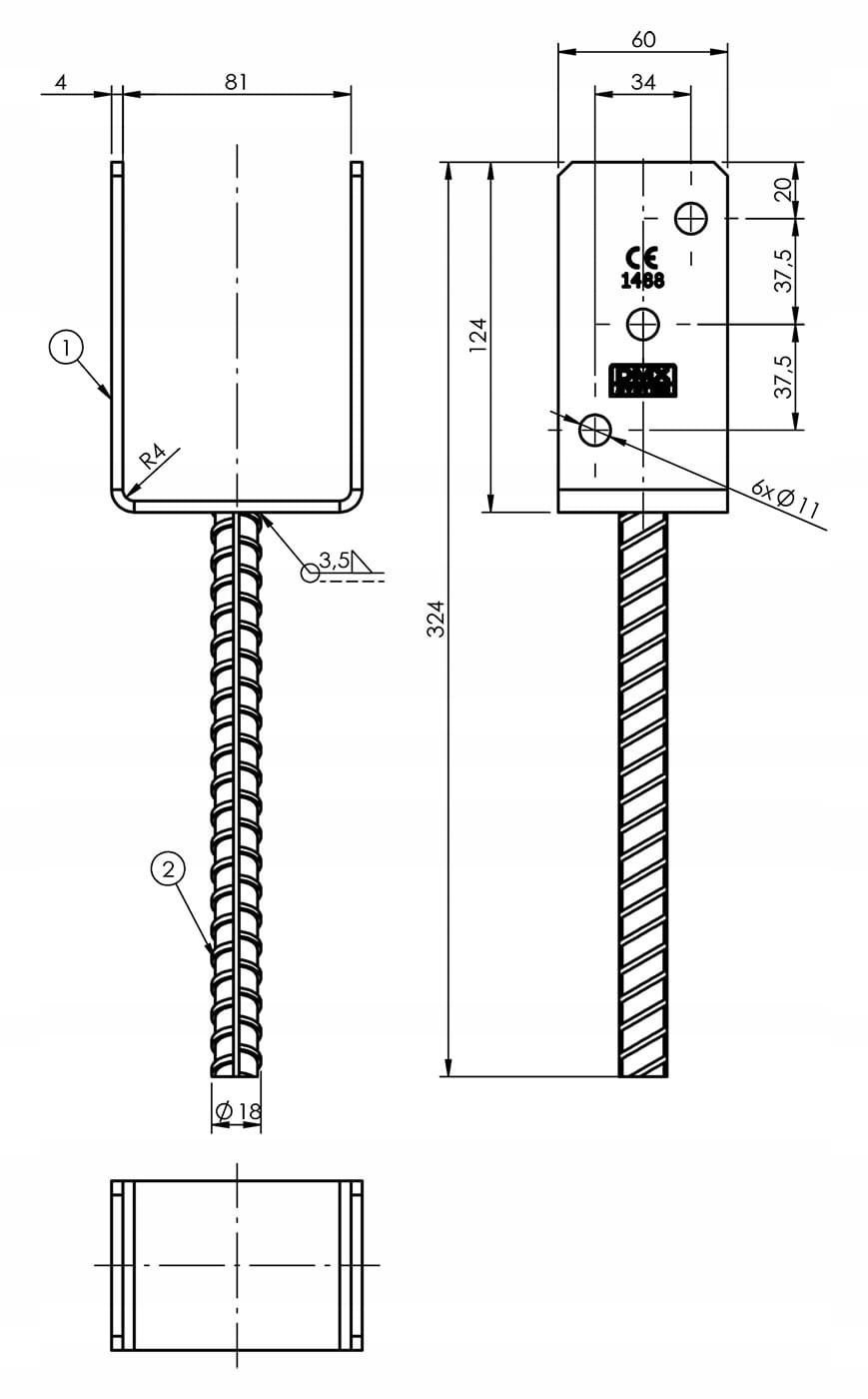 - Wymiary [mm]: Podstawy występują w kilku wymiarach: 61x120x60x4,0; 71x120x60x4,0; 81x120x60x4,0; 91x120x60x4,0; 101x120x60x4,0; 121x120x60x4,0; 141x120x60x4,0