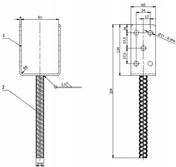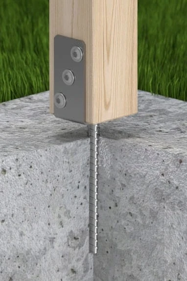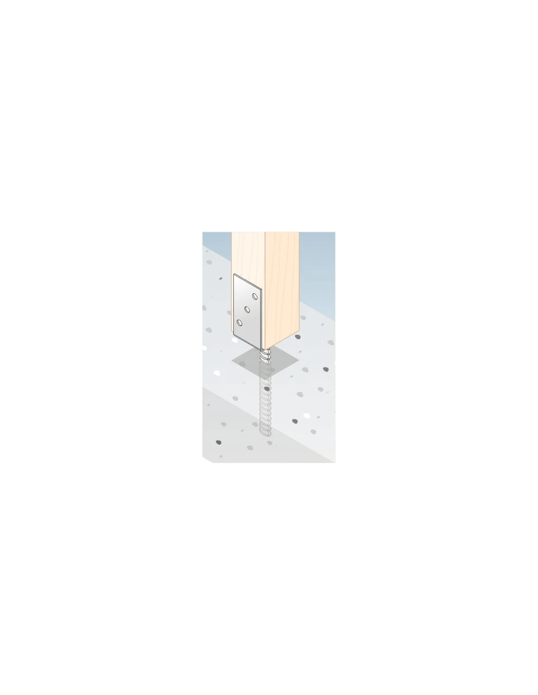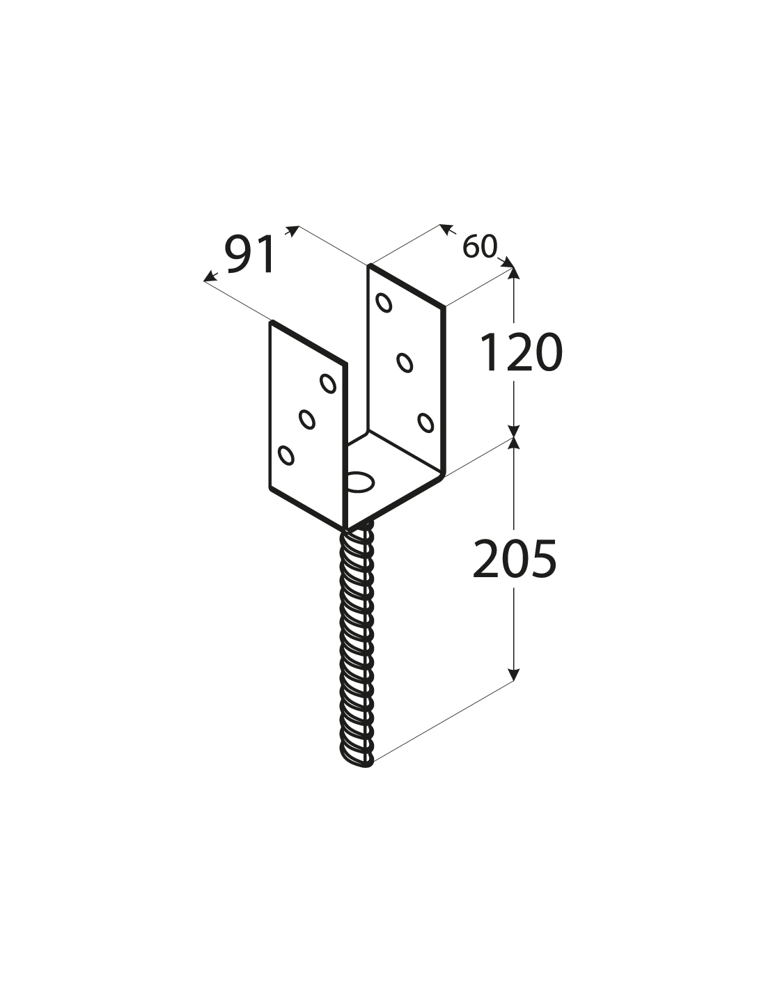 Podstawowy model zatapianej podstawy słupa. Ułatwia montaż elementów drewnianych z betonem, zapewnia odpowiednią dylatację drewna od podłoża.