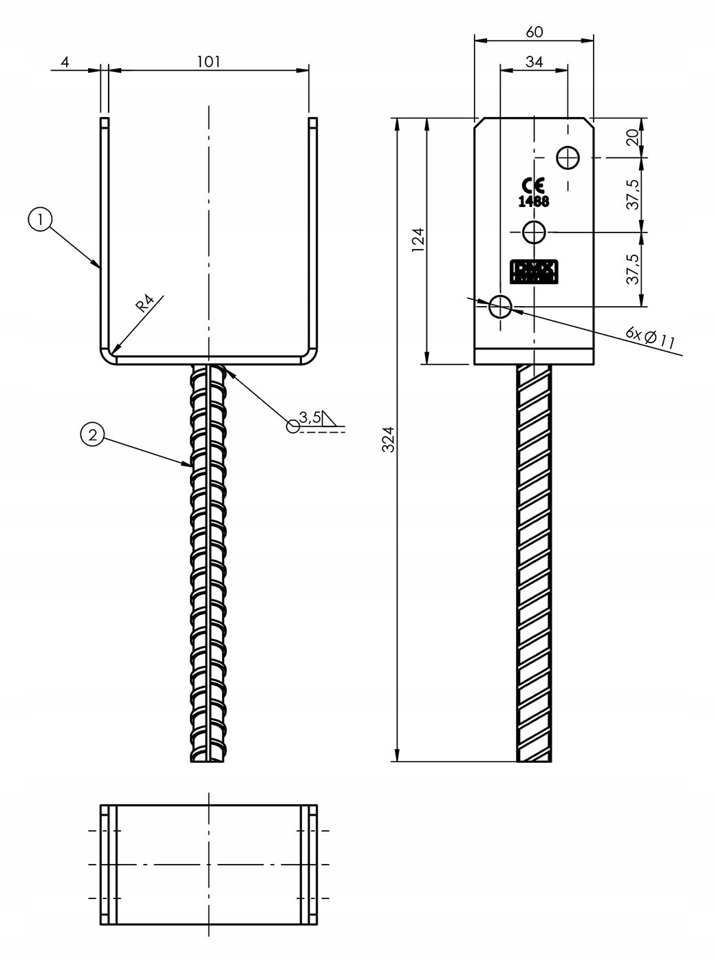 Metalowa kotwa do betonu otrzymała Europejską Aprobatę Techniczną o numerze ETA 14/0425 . Posiada żebrowany pręt o dużej średnicy i jest pokryta cynkiem ogniowym. Ma właściwości antykorozyjne oraz wysoką odporność na działanie wilgoci. Kotwy do słupów wkręcane do betonu "U" możesz pomalować farbą przeznaczoną do cynkowanych powierzchni.