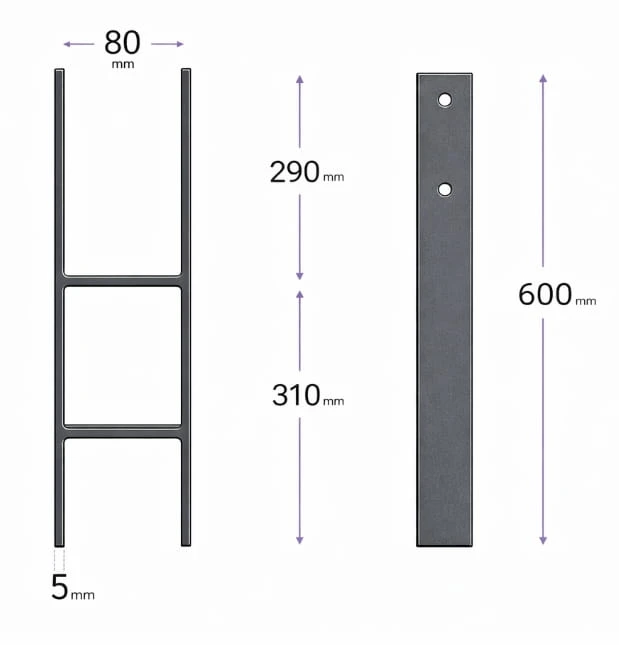 PODSTAWA SŁUPA,WSPORNIK,KOTWA H do wmurowania PSH 80x600x5mm ANTRACYT 1szt