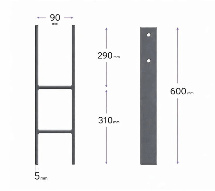 Podstawa słupa kotwa wspornik do wmurowania PSH 91 x 600 x 5 mm ANTRACYT
