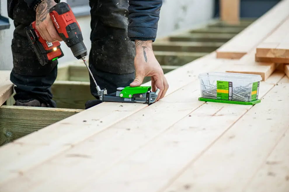 Dzięki systemowi HDS śruba tarasowa montowana jest z boku deski zapewniając ukryty montaż. Taras nabiera luksusowego i minimalistycznego charakteru, co jest trudne do osiągnięcia przy tradycyjnym montażu wkrętów. Narzędzie minimalizuje ryzyko pęknięć lub odprysków w drewnie, które łatwo powstają przy montażu za pomocą zwykłych wkrętów tarasowych.