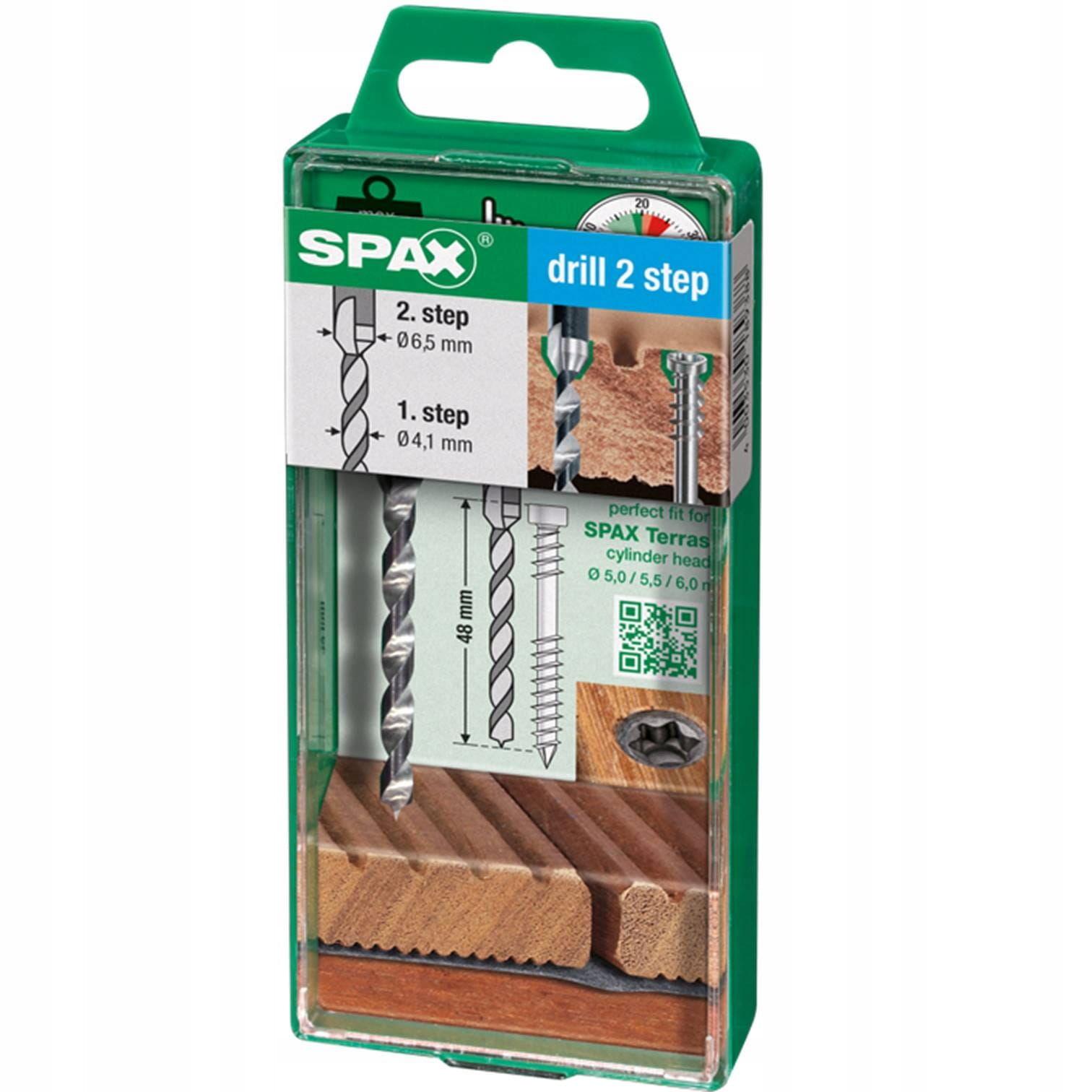 Wiertło dwustopniowe SPAX ma zastosowanie przy budowie tarasu, służy do montażu desek tarasowych z drewna twardego i miękkiego. To element Systemu SPAX Tarasy.
