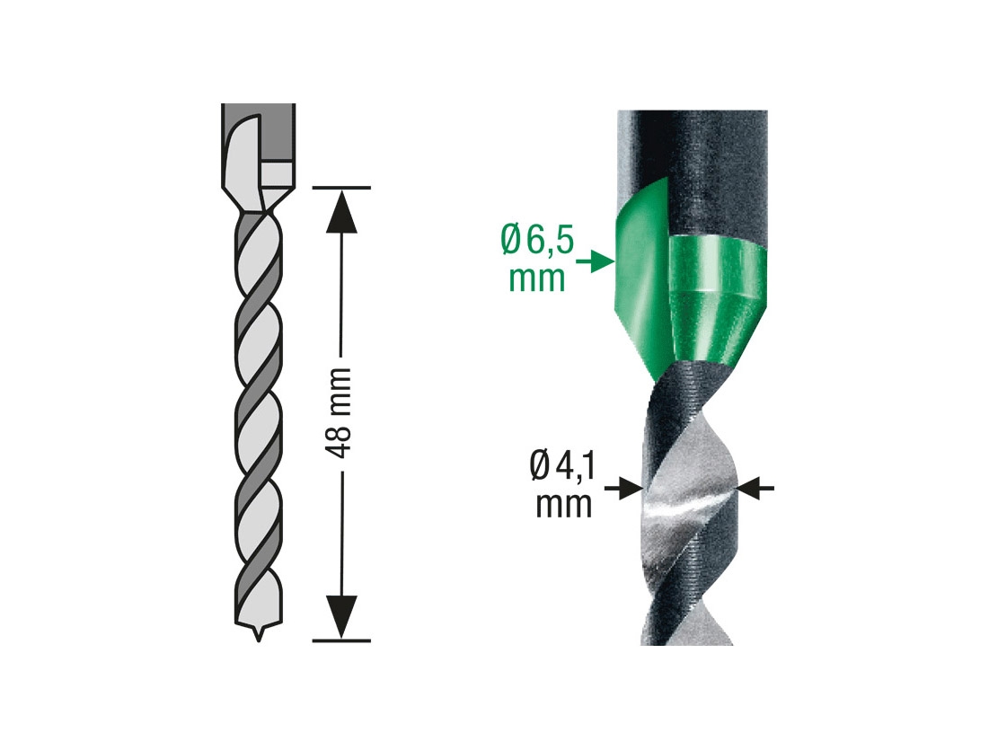 Dane techniczne: 2 stopnie wiercenia: Ø 4,1 mm i Ø 6,5 mm