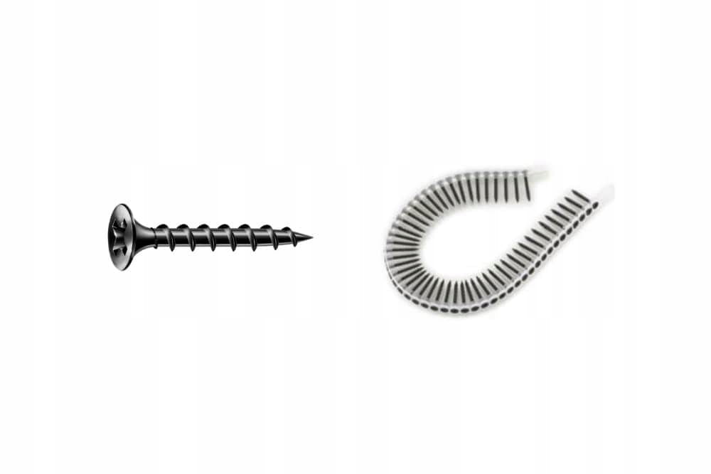 Wkręty do drewnianej konstrukcji suchej zabudowy GIX-B fosforanowane, czarne, na taśmie 1000szt