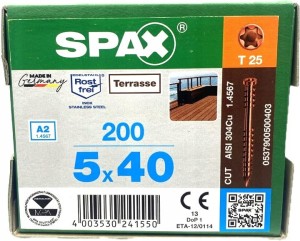 Wkręty tarasowe SPAX 5x40 w opakowaniu 200 szt