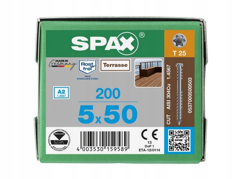 SPAX wkręty do montażu deski tarasowej 5x50 mm A2 INOX