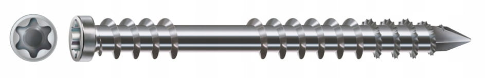Wkręt ze stali nierdzewnej A2 przeznaczony do montażu tarasów z ,,twardego" i egzotycznego drewna.