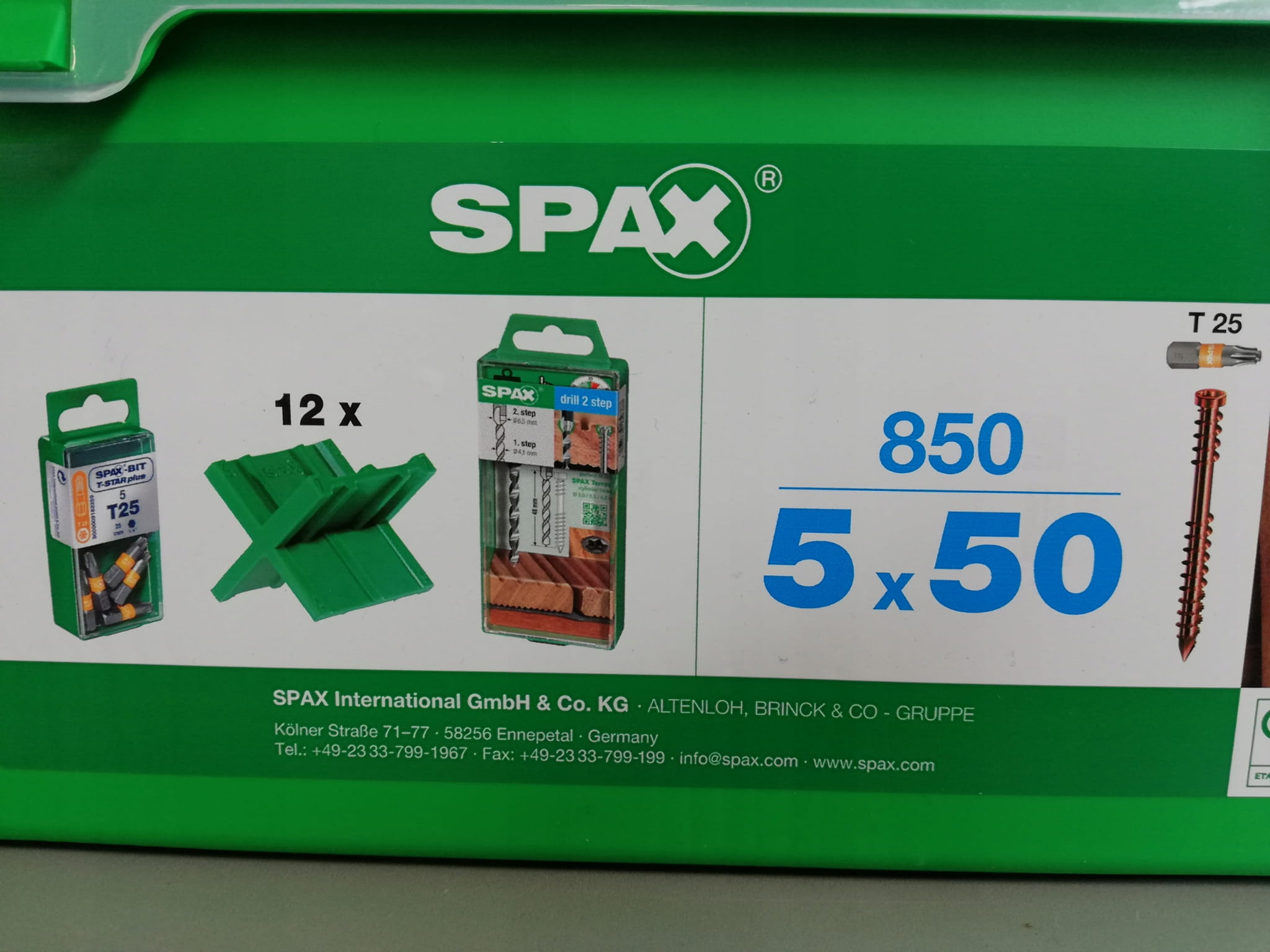 Spax ZESTAW Wkręty tarasowe do drewna 5x50mm 850szt. Green BOX Stare Złoto