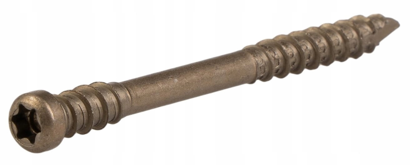 Wkręty ze stali nierdzewnej A2 przeznaczone do montażu tarasów z ,,twardego" i egzotycznego drewna.
