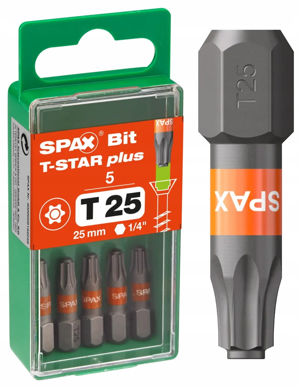 ✅ Bity SPAX T-Star plus można rozpoznać po pomarańczowym oznaczeniu, a rozmiar ostrza można odczytać z odpowiedniego nadruku i wytłoczenia.