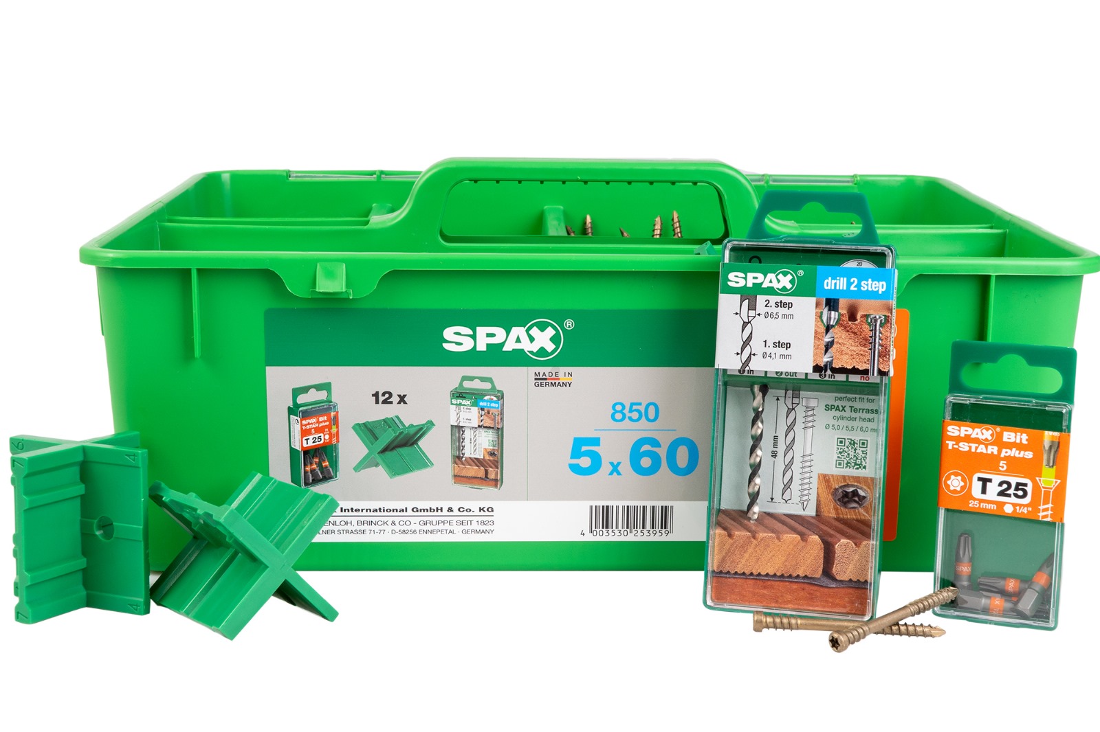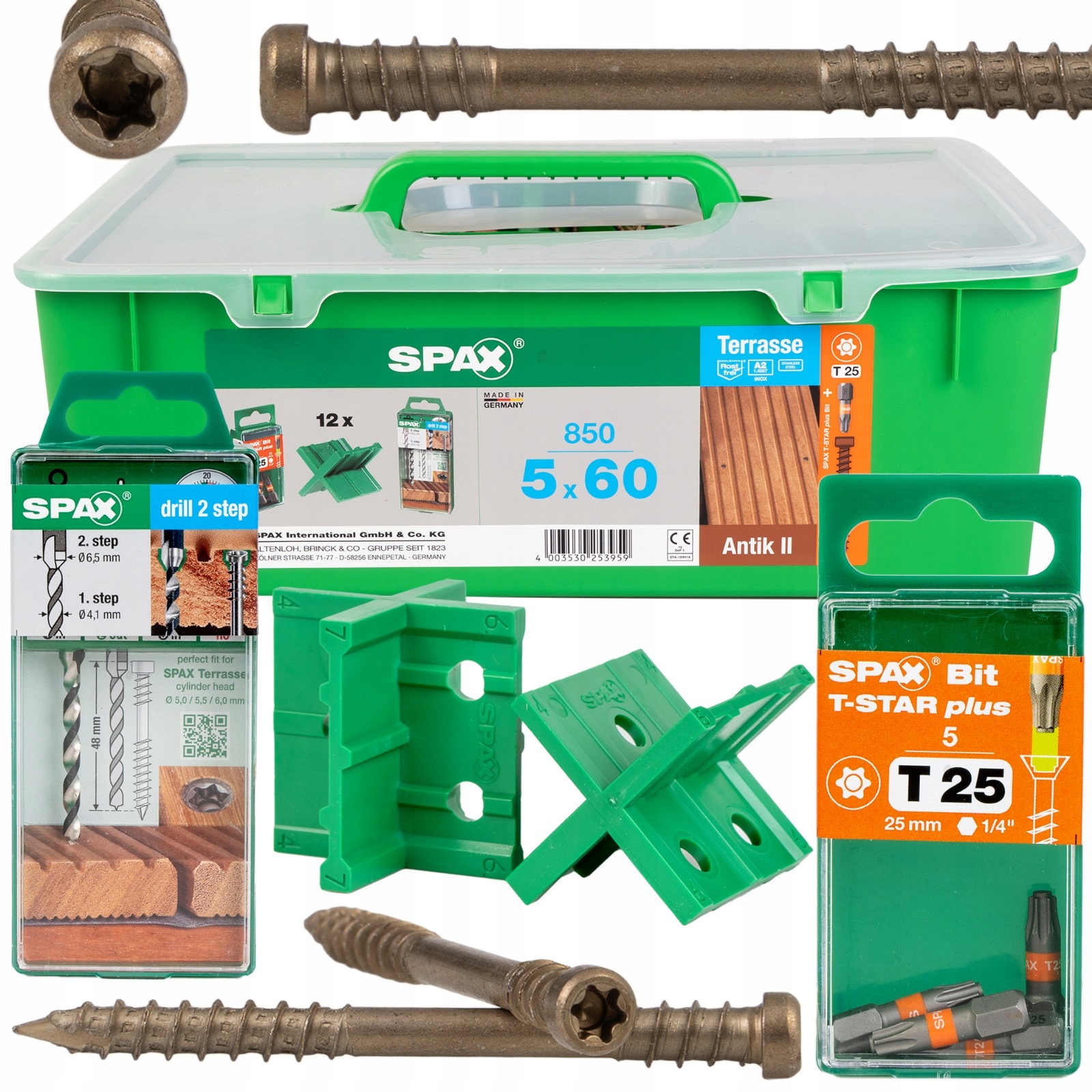 Spax ZESTAW Wkręty tarasowe do drewna 5x60mm 850szt. Green BOX Stare Złoto