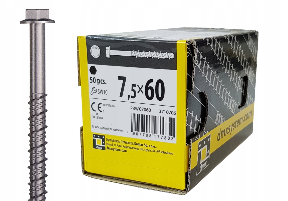 ✔ Średnica śruby: 7,5 mm.