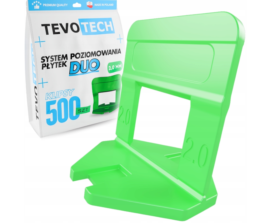 System Poziomowania Płytek DUO Tevotech zestaw 500sztuk klipsów - fuga 2mm