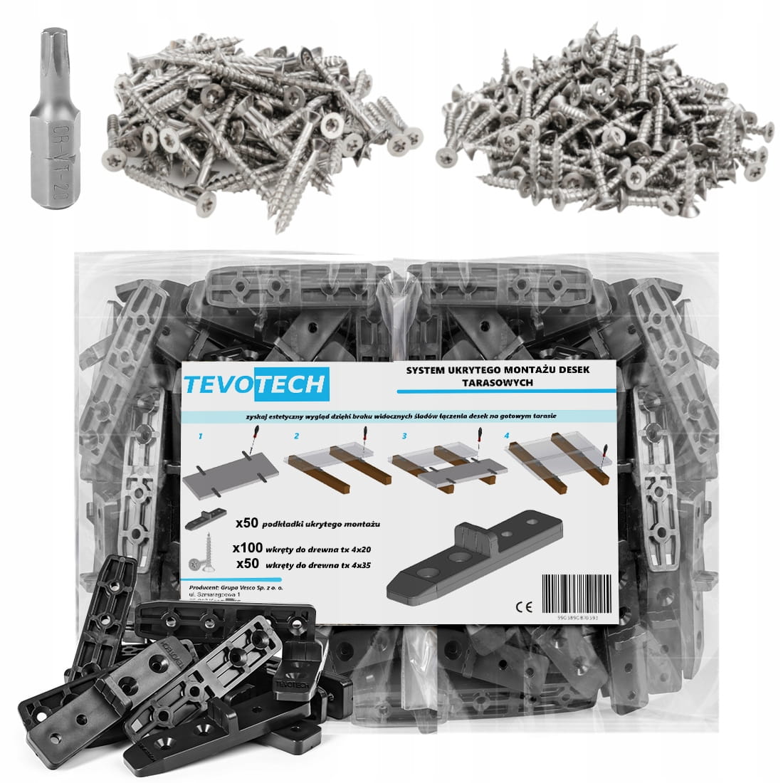 System ukrytego montaży desek tarasowych TEVOTECH + wkręty stal A2 201 el.
