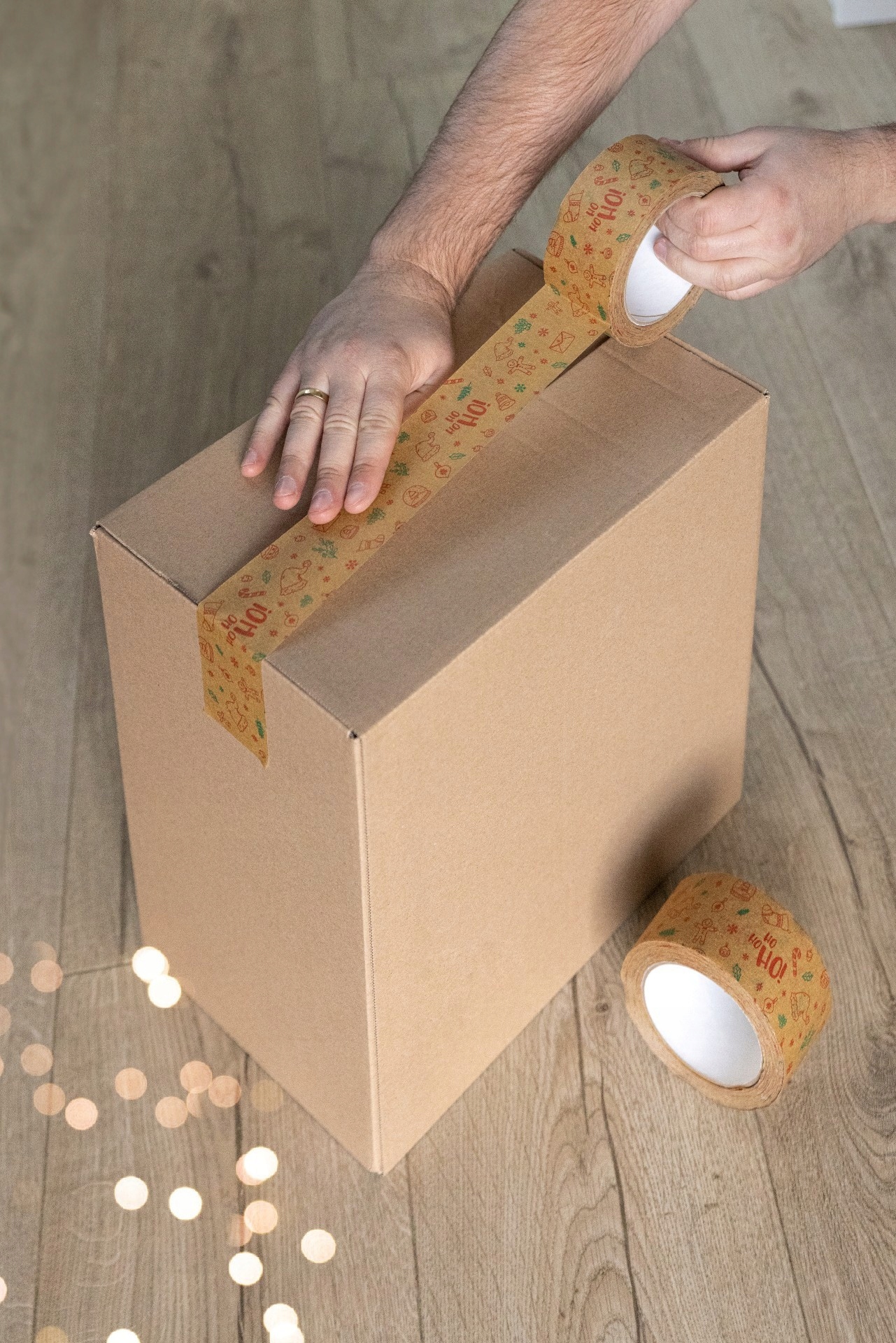 - Wyjątkowy nadruk utrzymany w świątecznym klimacie będzie pięknie zdobić paczki wysyłane w okresie świąt, jednocześnie dbając o ich bezpieczeństwo.
