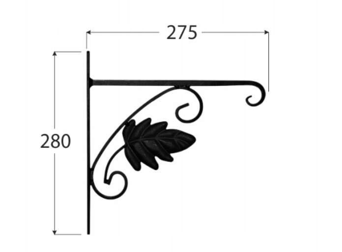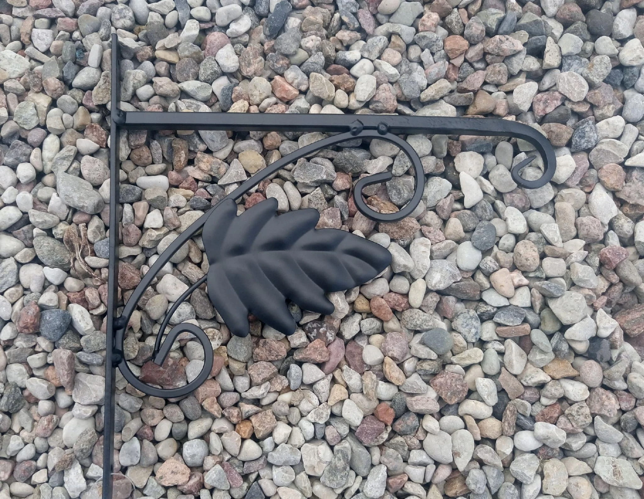 Uchwyt, hak, wieszak metalowy na doniczkę, kwietnik UK2 LIŚĆ CZARNY 1szt.