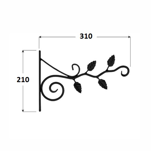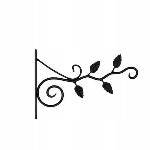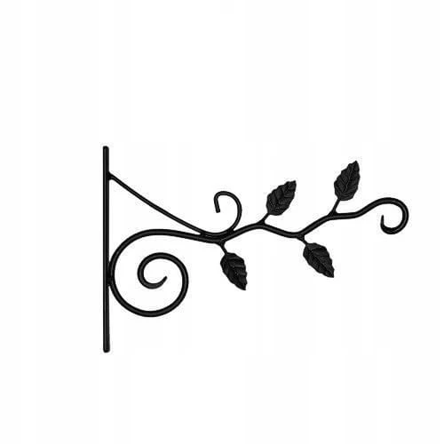 Hak do doniczki Wieszak metalowy czarny - hak na doniczkę metalowy do wiszących doniczek z kwiatami w kolorze czarnym. Wieszak z motywem listków. Hak ścienny , który utrzyma ciężką doniczkę z kwiatami. Wieszak do montażu na ścianie budynku, krokwi, pergoli itp. W zestawie 2 kołki do montażu.