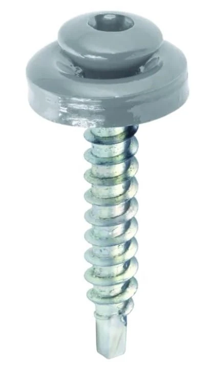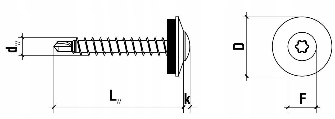 Wkręt samowiercący z podkładką z EPDM wykonany w powłoce cynkowej do mocowania blach, blachodachówki i obróbek blacharskich do podłoża drewnianego, Wkręt typu farmer z gniazdem TX.