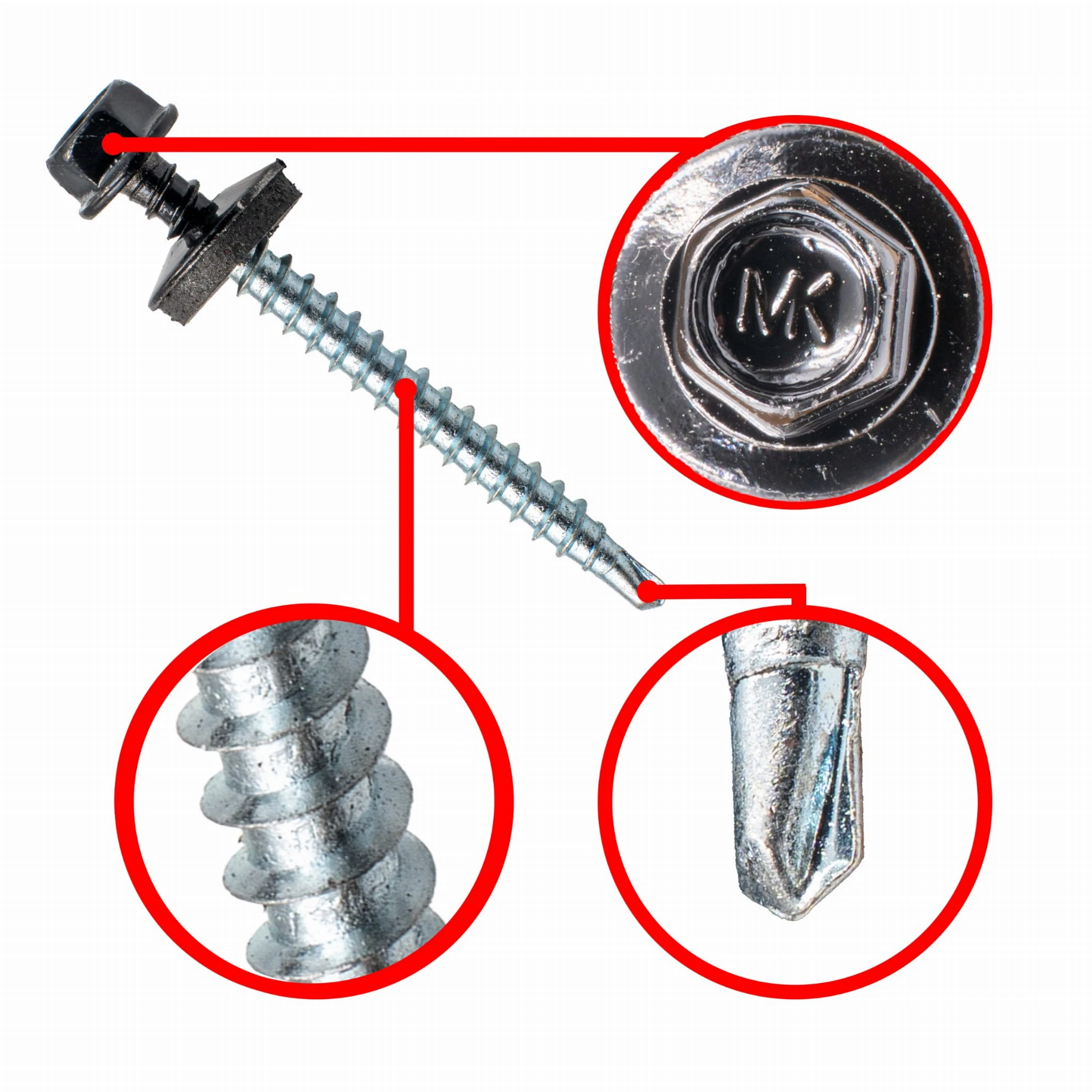 Wkręty farmerskie-samowiercące z podkładką EPDM wykonane w powłoce cynkowej do mocowania blachy, blachodachówek i obróbek blacharskich do podłoża drewnianego. Wkręty typu farmer lakierowane są wg. palety kolorów RAL
