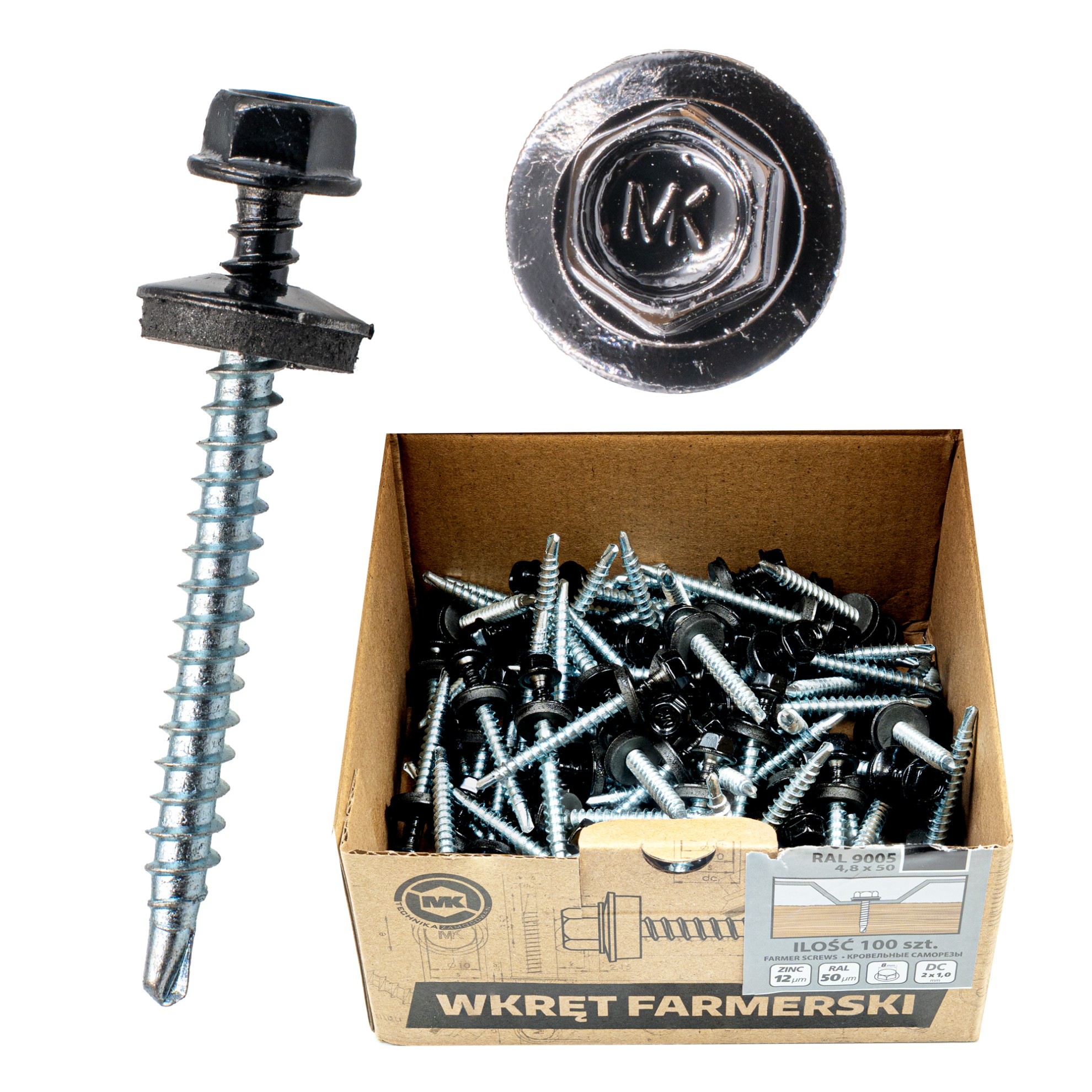 WKRĘTY FARMERSKIE MagKrak do drewna 4,8x50mm RAL 9005 100 szt.