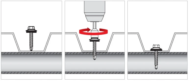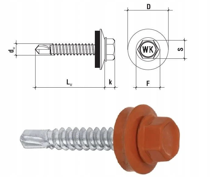 Wkręt samowiercący marki Wkręt-met z podkładką EPDM do mocowania blach do podłoża stalowego.