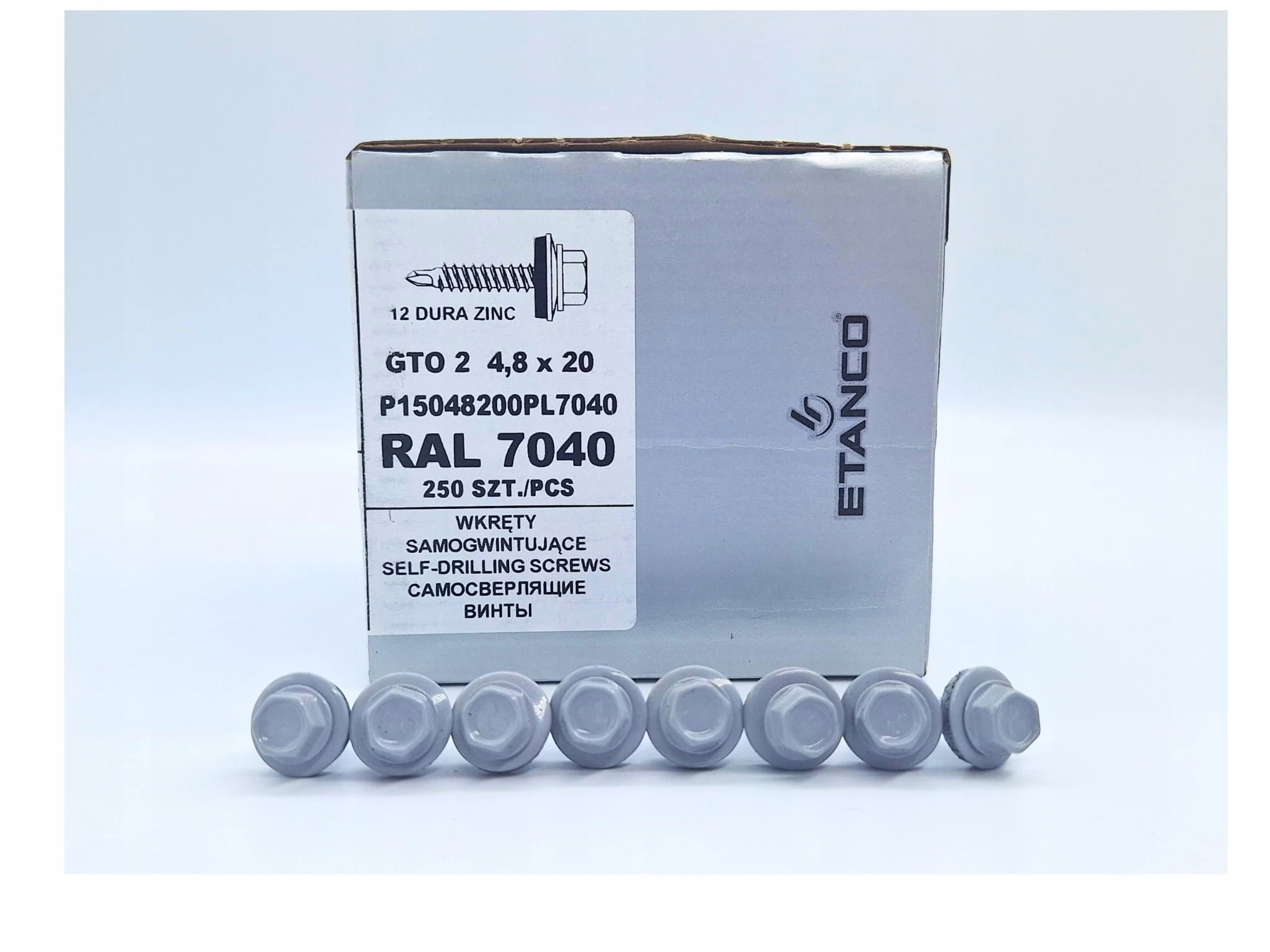 WKRĘTY FARMERSKIE do blachy, zszywka 4,8x20mm, RAL 7040 250szt. Etanco